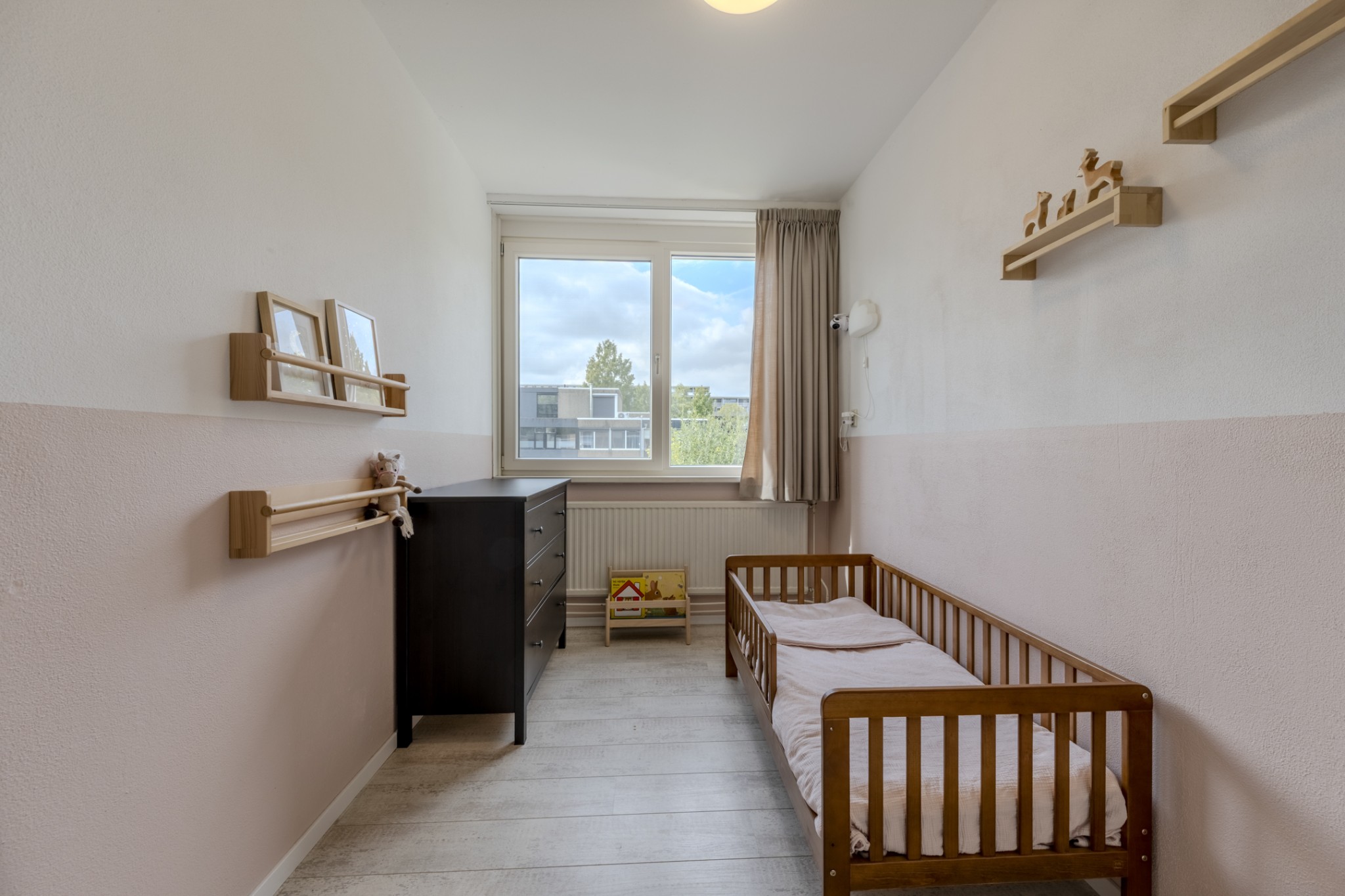 Slaapkamer, ± 9 m², met laminaatvloer.