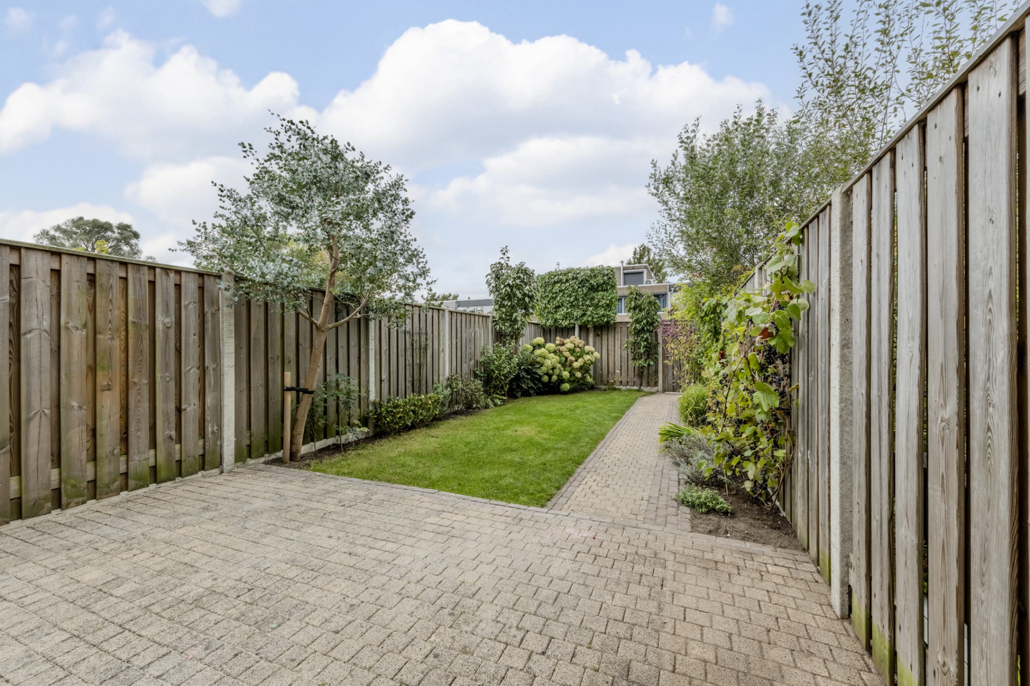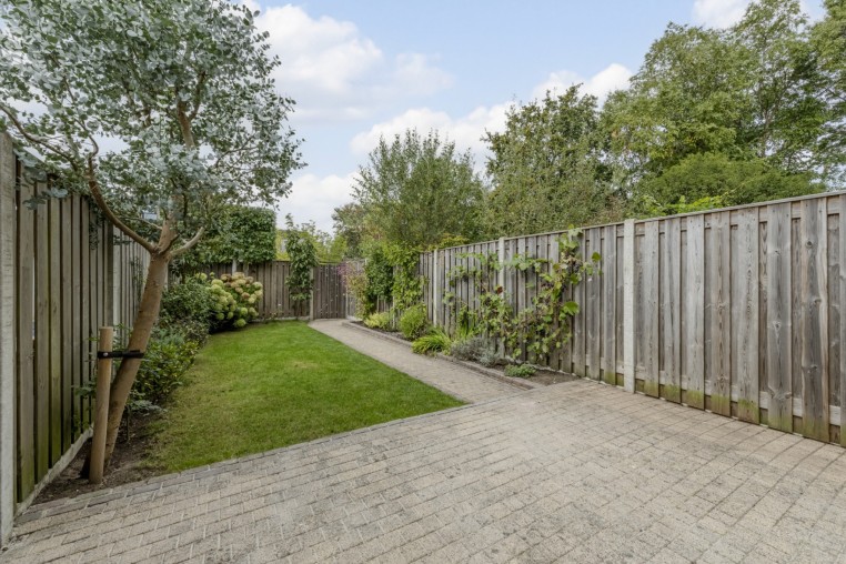 Sfeervolle, keurig aangelegde en privacy biedende achtertuin.