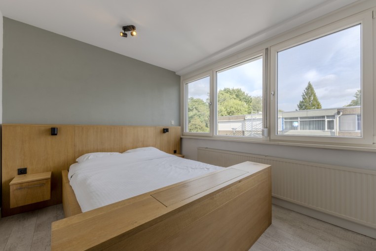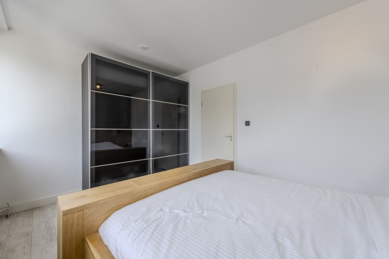 Royale slaapkamer, ± 13 m², met laminaatvloer en schuifdeurenkast.